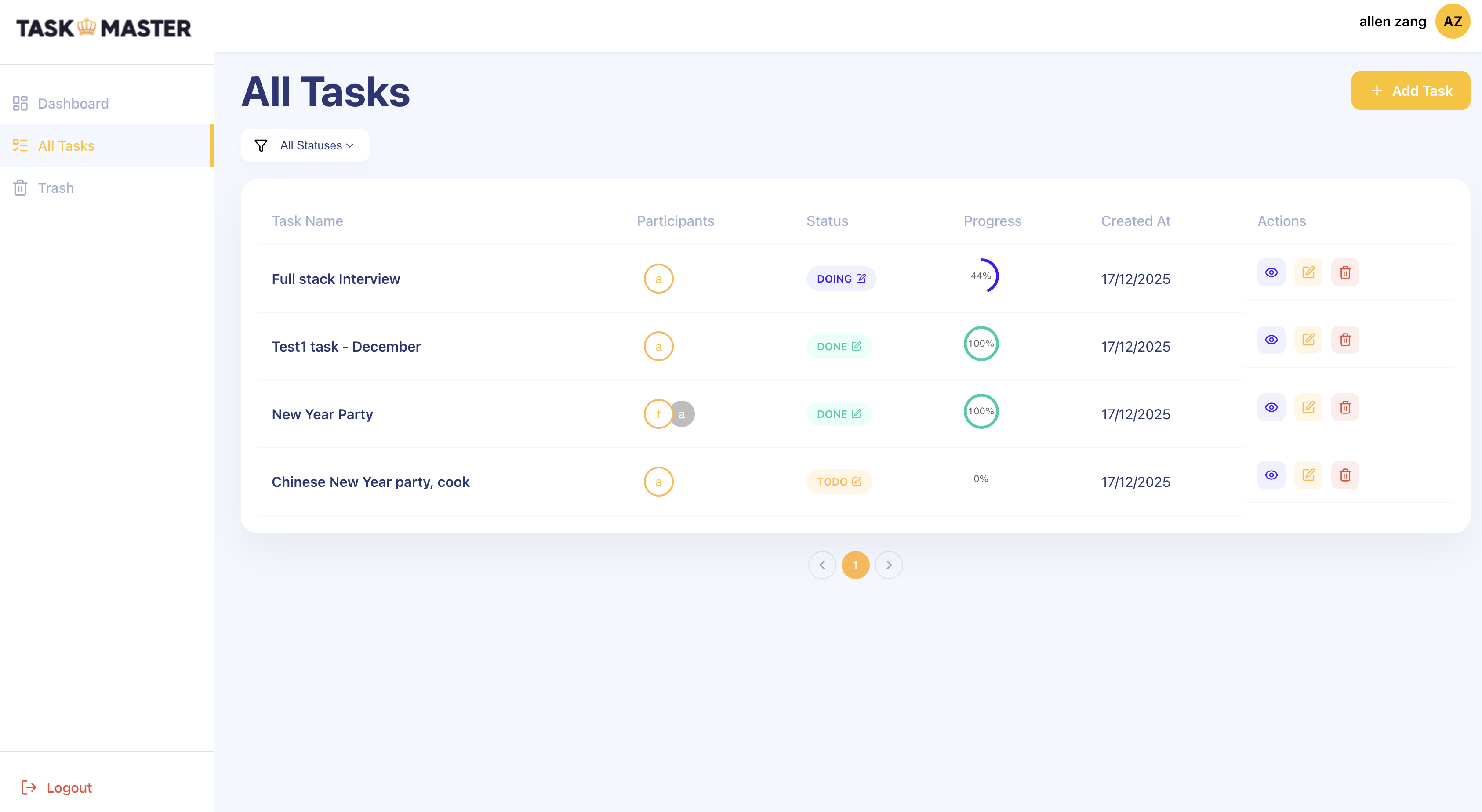 - Task Management: Create, Read, Update, Delete (CRUD) tasks.