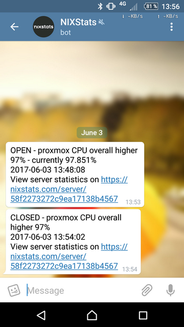 A Webhook to get your servers/monitors notifications on Telegram with NIXStats