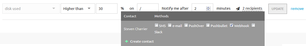 - On your server in "NOTIFICATIONS" tab and "Manage Notifications" click on "recipients" and check "Webhook"