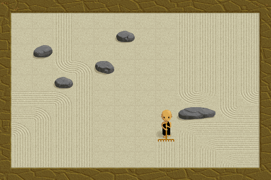 Zen garden is the surface spilled by thicker sand (small stones). However, it also contains immovable larger objects, such as stones, statues, structures, self-pastures. The monk must adjust the sand in the garden using the rakes to form belts in the image: