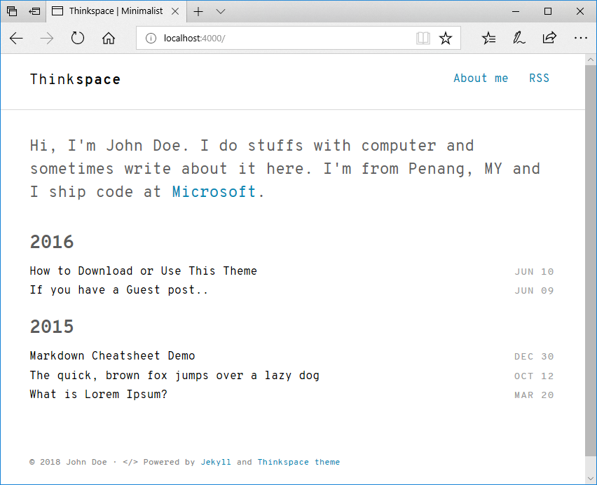 Thinkspace is just another minimalist Jekyll theme which designed for technical writing blog.