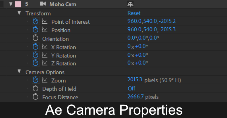 SimplSam's AE Camera Export is a Moho tool that allows you to export Camera property & keyframe data to the clipboard, ready for pasting directly to Adobe After Effects.