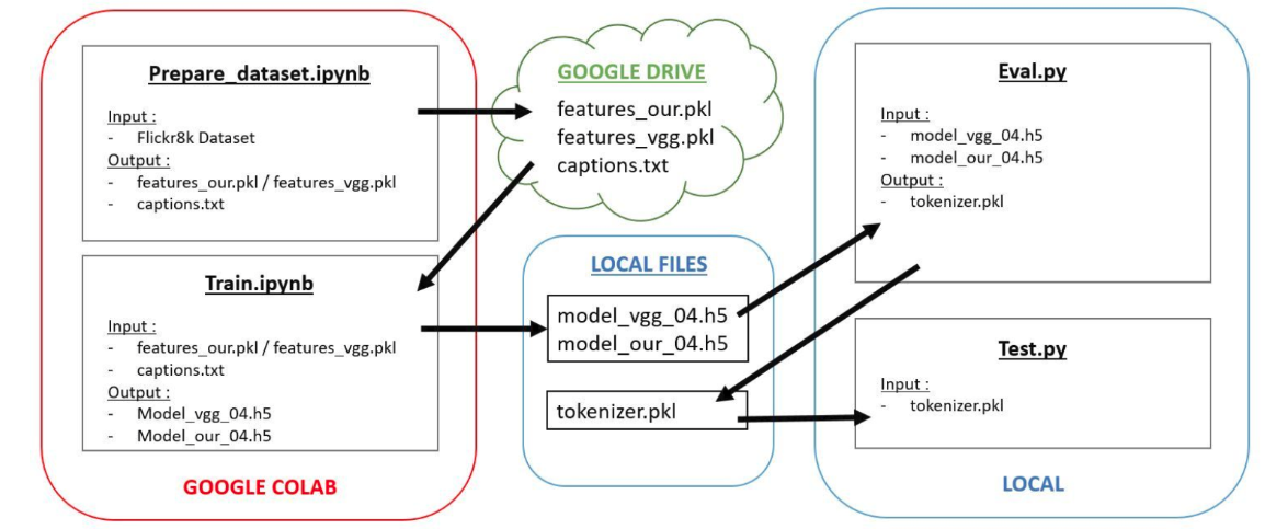 We implemented our own model for the feature extraction, based on the vgg16 architecture, to compare the final scores. The NLP part is exactly the same.