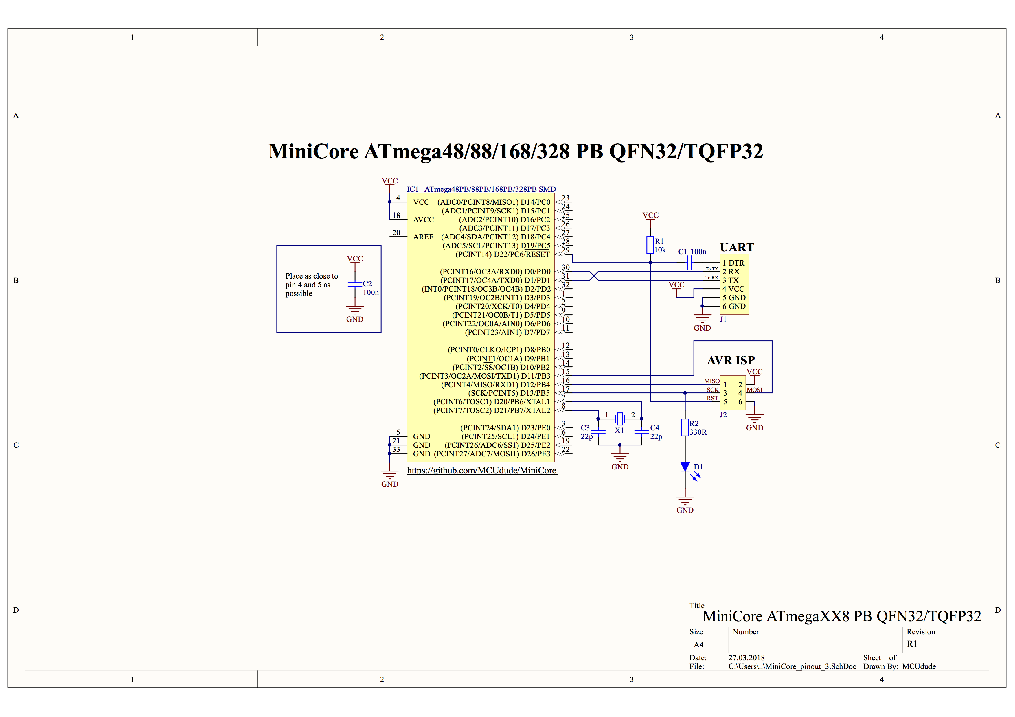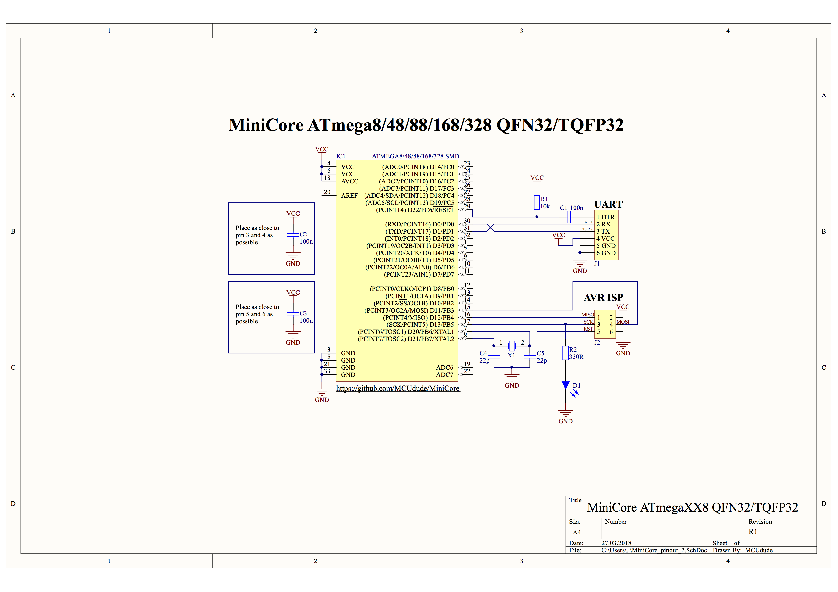 - (If you're not planning to use the bootloader (uploading code using a USB to serial adapter), the FTDI header and the 100 nF capacitor on the reset pin can be omitted.)