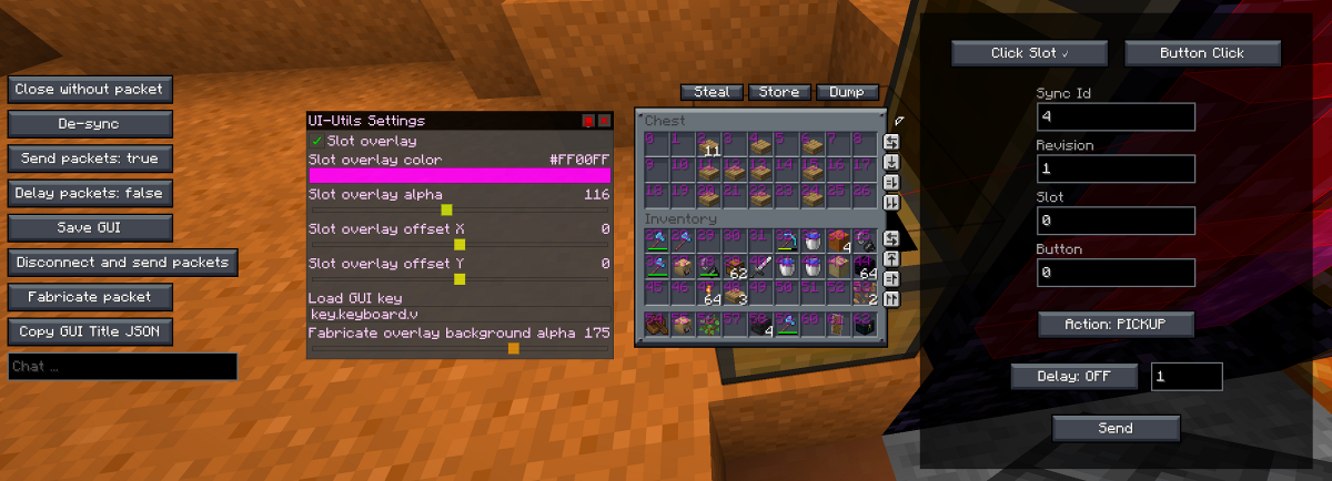 - Toggle 'Steal/Store Same' to move items that match the same ones in the players inventory or chest. Bind-able to a key.