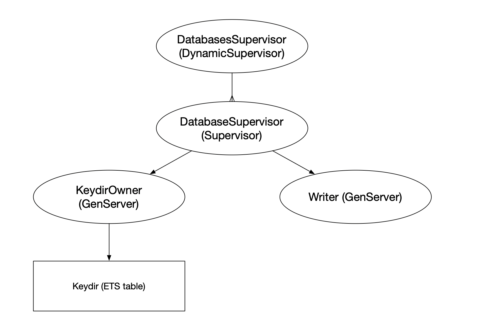 Each DatabaseSupervisor supervises a Writer and KeydirOwner process.