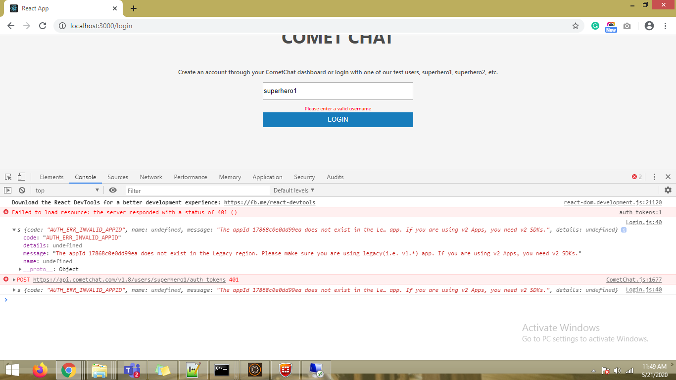 Not able to login with dummy username i.e superhero1 etc. Getting error as attached in the screenshot.