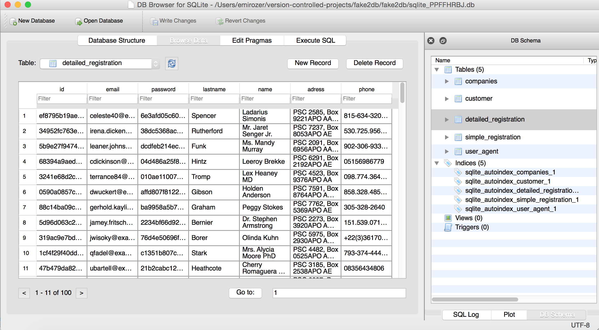 Generate fake but valid data filled databases for test purposes using most popular patterns(AFAIK).