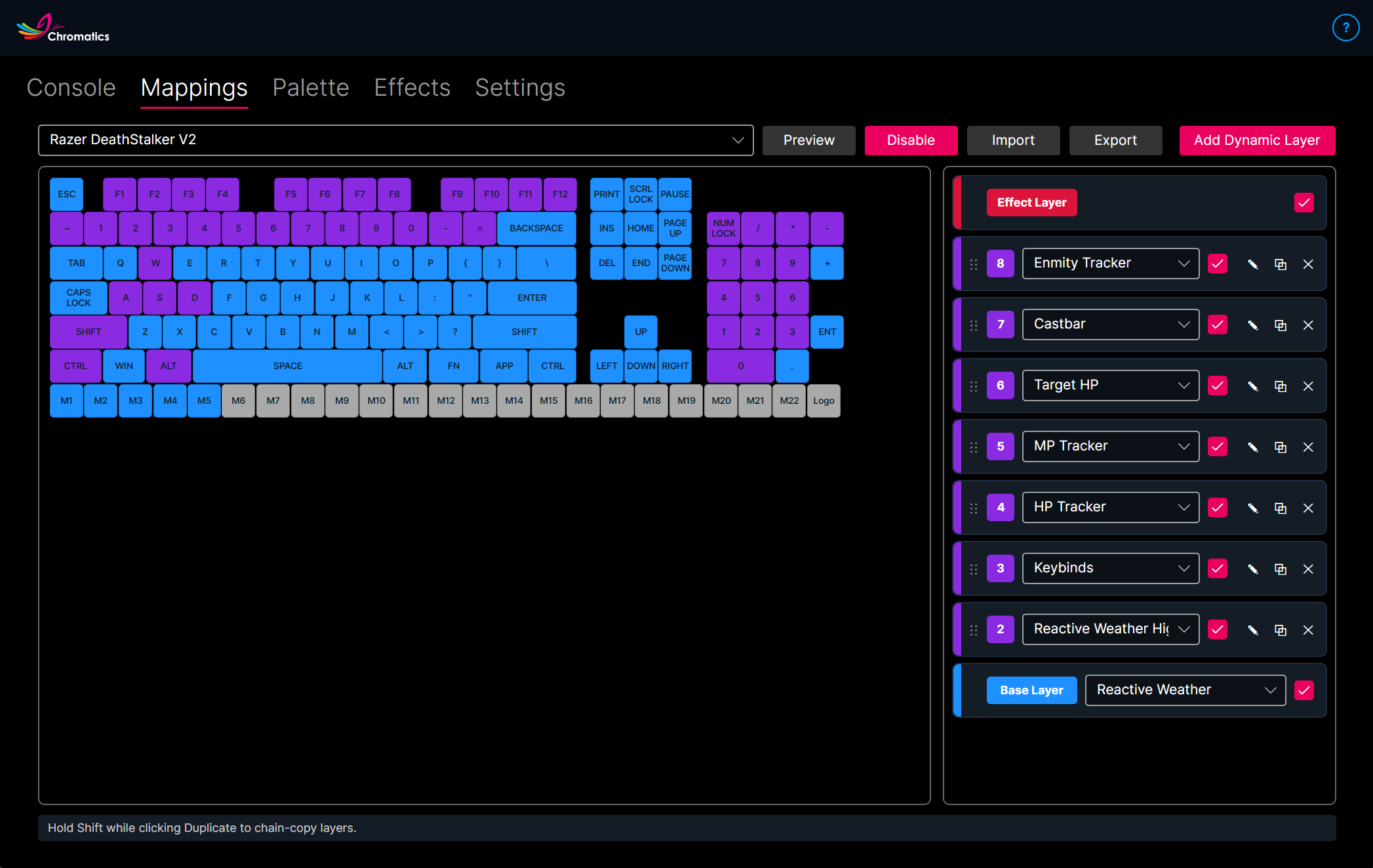 - Keybinds - lights your keys depending on your mapped keybind status