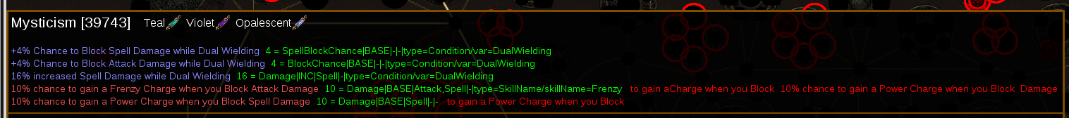 function(node, out, data)node: The node that is being affected within the radius. Can use things likenode.typeto determine notable or keystone, for exampleout: Instance ofModListClass, used for altering or replacing the mod originally on the nodedata: other data that might be relevant. Mostly just used for preserving the source withdata.modSource