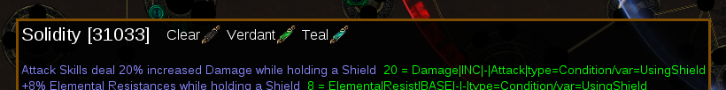 The mod we'll demonstrate adding is "Attack skills deal 20% increased damage while holding a Shield" from the Solidity notable on the passive tree.