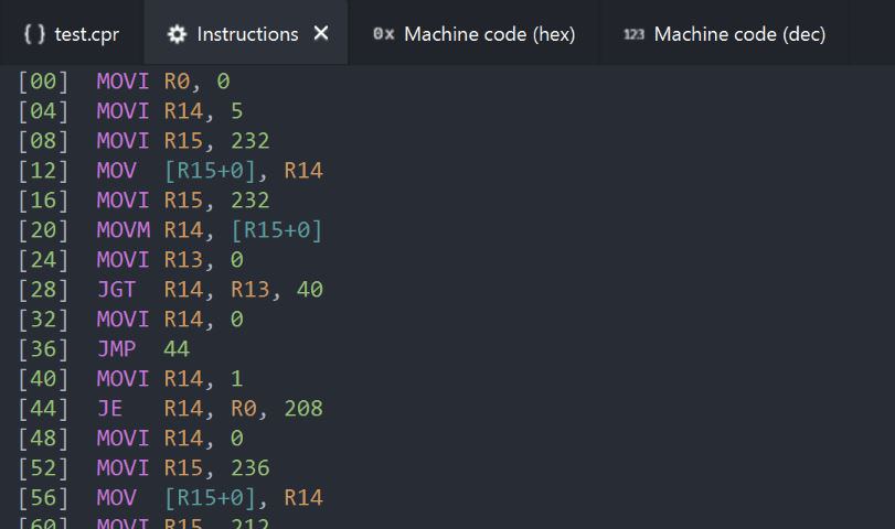 View > Machine code (dec) tab | Toggle machine code (dec) tab |