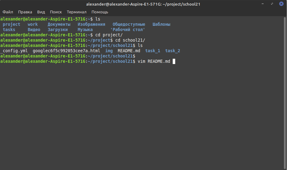 Если сделали всё верно, то в каталоге project должен появиться каталог с названием репозитория school21, в котором будут находиться клонированные файлы репозитория, доступные для редактирования.