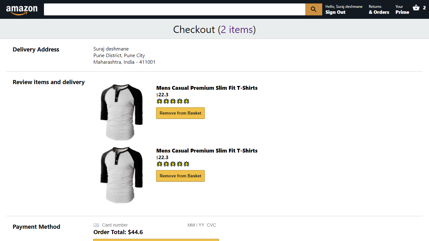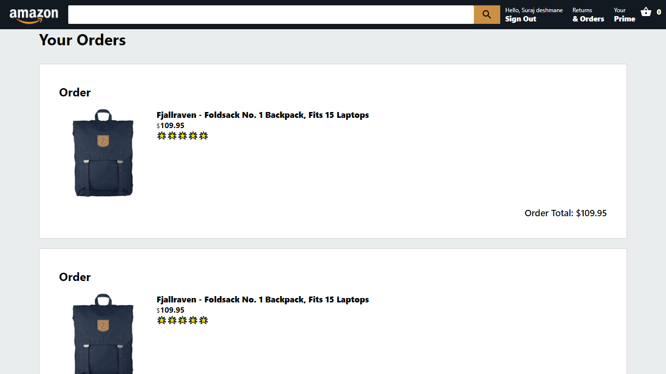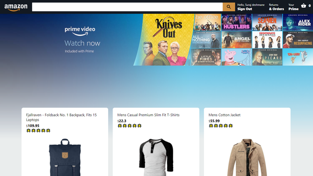 Amazon clone using MERN stack with cart, payment processing and Authentication Functiionality.